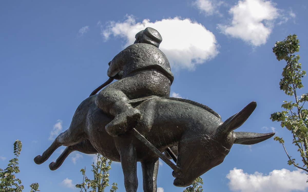 Dit kunstwerk is gemaakt door Nico Onkenhout. Het standbeeld staat er al sinds 1973. Het beeld is geïnspireerd op het boek Dik Trom. De schrijver van het boek namelijk uit Hoofddorp. Het boek kwam in 1891 uit en voor die tijd was het personage van een ondeugend jongetje heel nieuw. Dit beeld is niet het enige wat Hoofddorp heeft. Er is een school en een sporthal naar hem vernoemd en het plein waarop dit beeld staat heet het Dik Trom plein. Het beeld is van brons en representateerd Dik Trom die achterstevoren op een ezel zit.