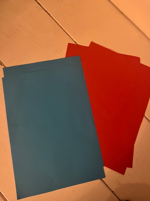 Ik ben begonnen met het papier pakken. Ik heb gekozen voor de kleuren rood en blauw, omdat dat wel toepasselijk is.