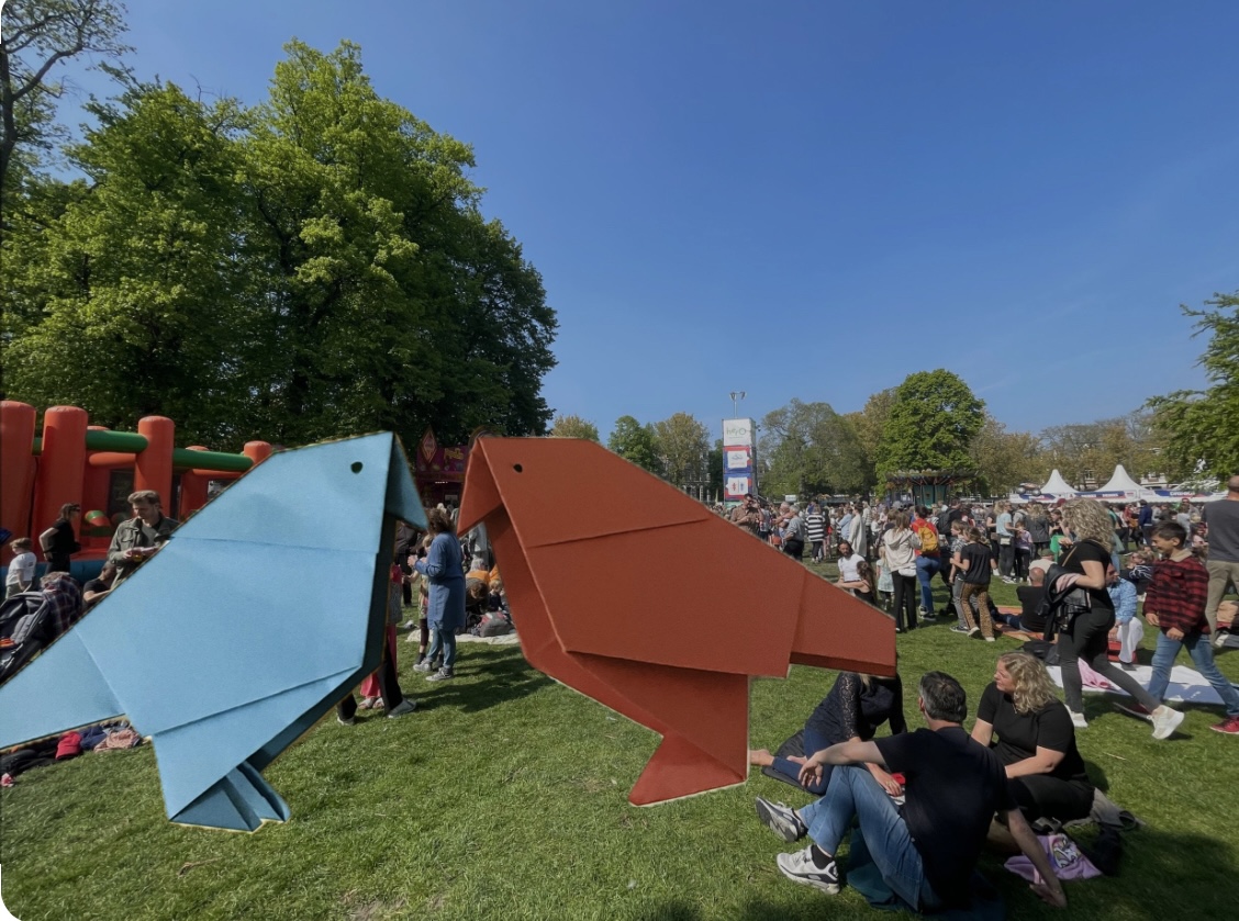 Ik ben erg blij met het uiteindelijke eindresultaat. Ik vond het soms best moeilijk te volgen en om de lijnen mooi strak te krijgen. Toch ben ik erg blij met het eindresultaat. Ik denk dat het een hele mooie toevoeging zou zijn als deze 2 vogels ook daadwerkelijk op het festival zouden staan. Daarom heb ik ze op een foto van het festival geedit.